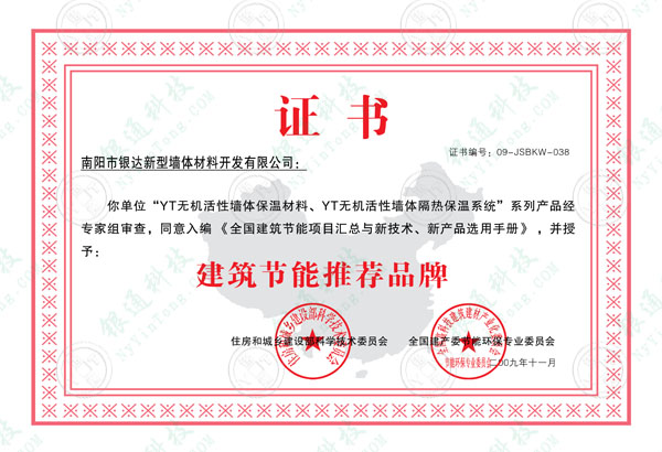 建筑節能推薦品牌國家證書