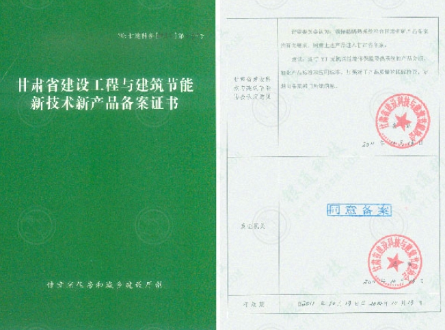 甘肅省建設(shè)工程與建筑節(jié)能新技術(shù)新產(chǎn)品備案證書 有效期:2011年10月13日 至 2014年10月13日
