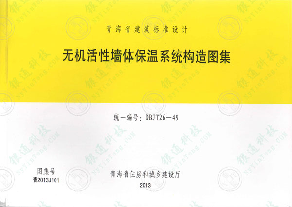此證書為往年曾獲證書,目前已失效,本介紹頁僅為方便用戶了解企業歷史資質,望悉知 青海省建筑標準設計 《無機活性墻體保溫系統構造圖集》統一編號:DBJT26-49 圖集號:青2013J101 青海省住房和城鄉建設廳