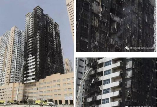 另外還有2016年3月29日夜間,阿拉伯聯合酋長國阿志曼(Ajman)的一處由十二棟高層建筑組團發生火災,這棟建筑用巖棉帶做的保溫(隔熱)層,但鋁板外墻燒殘了,在此之前,僅阿聯酋一年就燒四把火,大部分是幕墻著火。