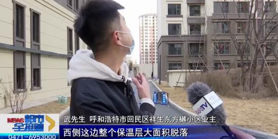 呼和浩特市武先生居住的小區(qū),剛交房三個(gè)多月,新新房子一場風(fēng)過后,外墻保溫層就大面積脫落,砸落的水泥塊讓住戶們很是擔(dān)憂。